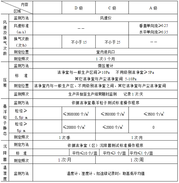 2.1 為確保潔凈室的凈化環(huán)境和潔凈度,需對(duì)潔凈室定期監(jiān)測(cè),正常生產(chǎn)時(shí),監(jiān)測(cè)項(xiàng)目和頻次按《潔凈室監(jiān)測(cè)表》,在靜態(tài)下測(cè)試,并進(jìn)行動(dòng)態(tài)監(jiān)控,重點(diǎn)崗位每季度監(jiān)測(cè)一次沉降菌數(shù)和塵埃粒子數(shù)。凈化設(shè)備大修或停產(chǎn)10天以上,生產(chǎn)前要進(jìn)行徹底清理,并測(cè)試潔凈區(qū)各項(xiàng)指標(biāo)。