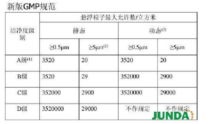 新版GMP中的潔凈度等級指標